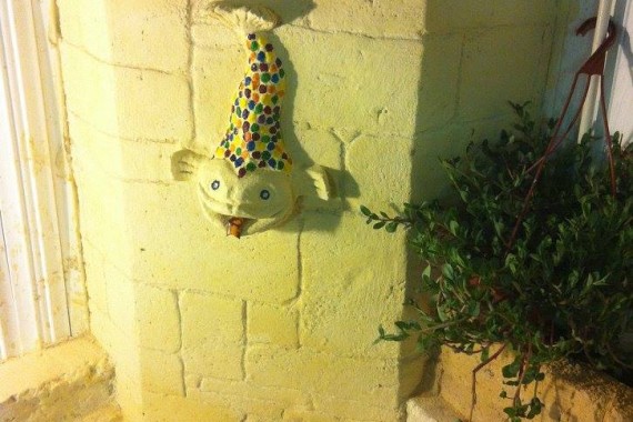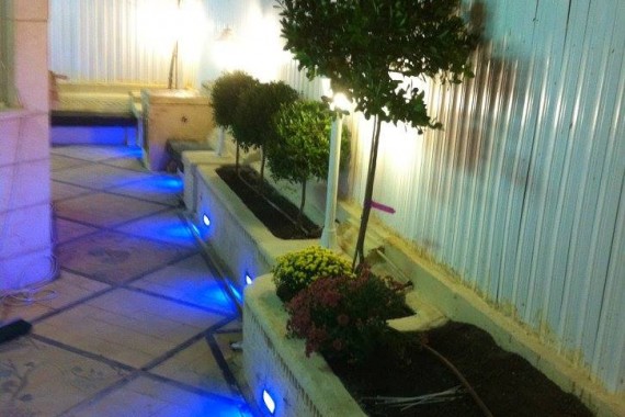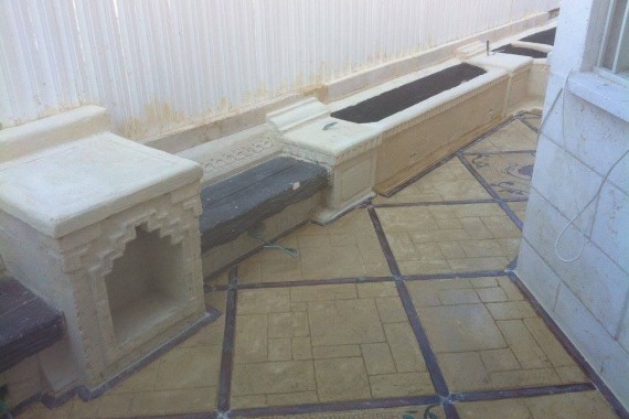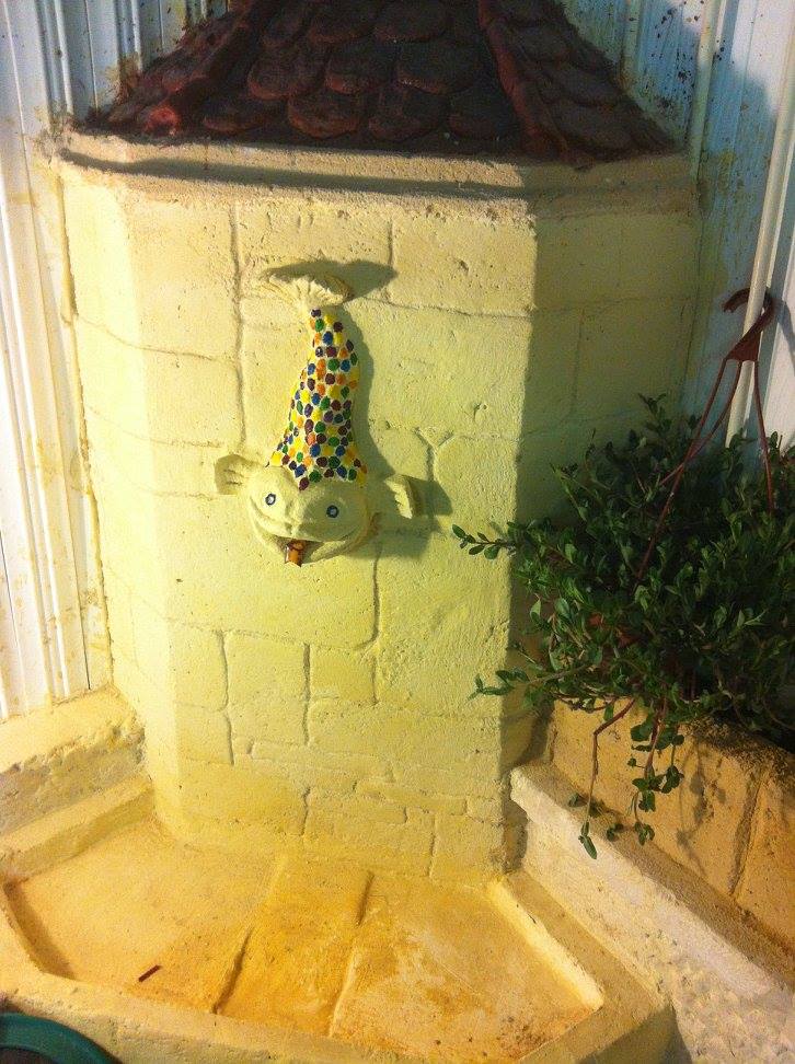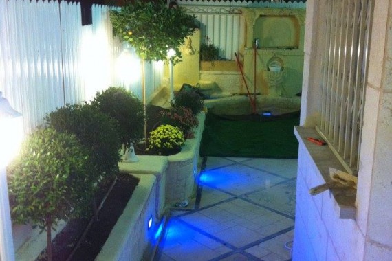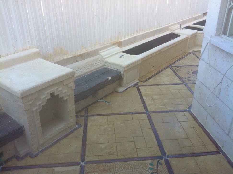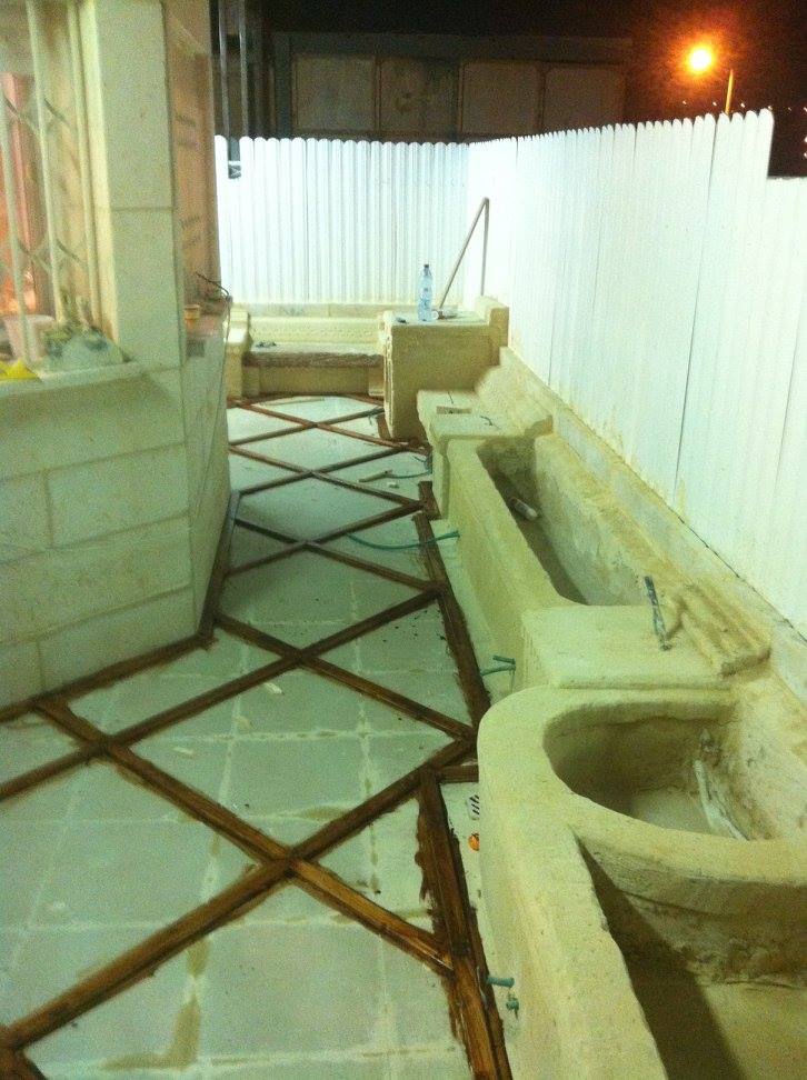 Création de Jardin chez Yehoshua avec sculpture de fontaine et sol carrelé .